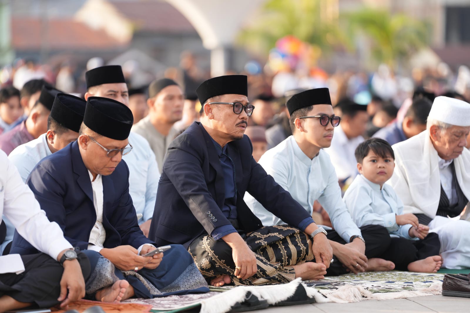 “Hari ini kita fitri, kita bergembira karena kita telah berjuang selama sebulan penuh dengan melaksanakan puasa Ramadan menahan hawa nafsu,” ujar Suhardi Duka.