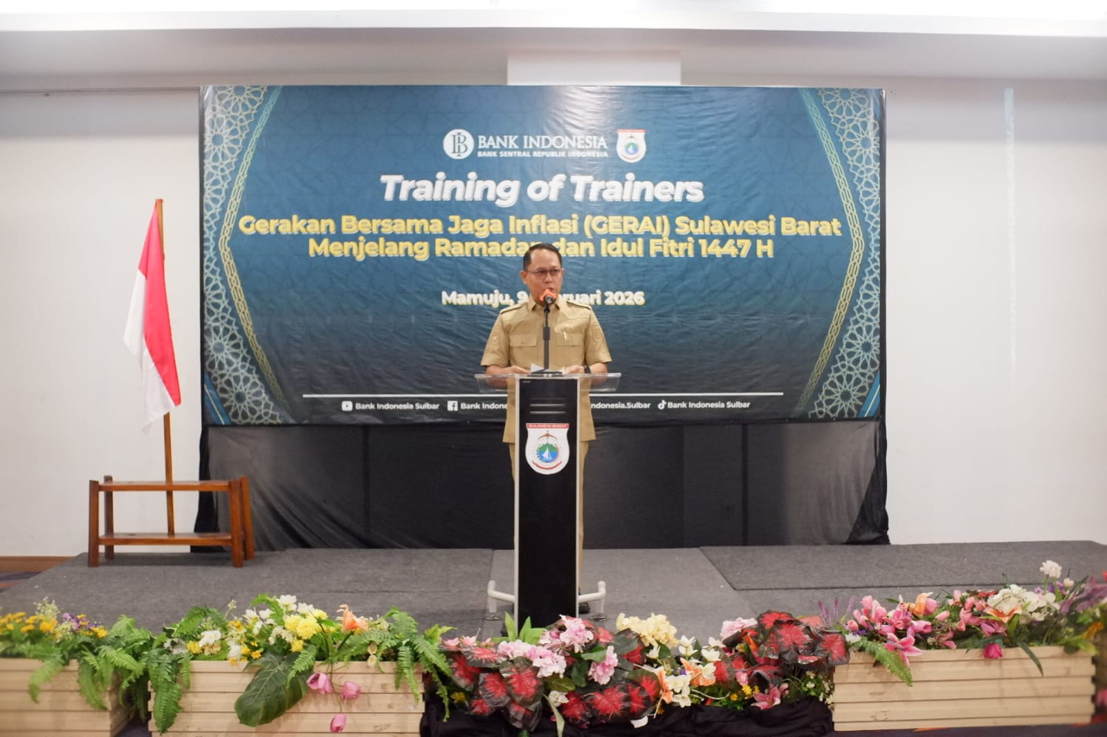 Mamuju, Pemerintah Provinsi Sulawesi Barat melalui Biro Perekonomian dan Administrasi Pembangunan (Ekbang) Setda Sulbar bersama Tim Pengendalian Inflasi Daerah (TPID) Provinsi Sulawesi Barat dan Bank Indonesia (BI) menggelar Training of Trainers (ToT) Gerakan Bersama Jaga Inflasi (GERAI) menjelang Ramadan dan Idul Fitri 1447 Hijriah, Senin (9/2/2026).