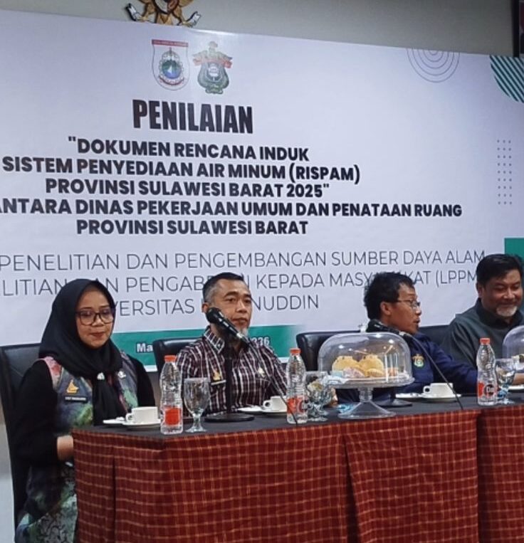 Mamuju – Dinas Pekerjaan Umum dan Penataan Ruang (PUPR) Provinsi Sulawesi Barat bersama Lembaga Penelitian dan Pengabdian kepada Masyarakat (LPPM) Universitas Hasanuddin (Unhas) melaksanakan penilaian Dokumen Rencana Induk Sistem Penyediaan Air Minum (RISPAM) Provinsi Sulawesi Barat Tahun 2025. Kegiatan ini digelar pada Kamis, 29/1/2026, di Grand Maleo Hotel & Convention Mamuju, sebagai bagian dari upaya penguatan perencanaan pembangunan sektor air minum di daerah.